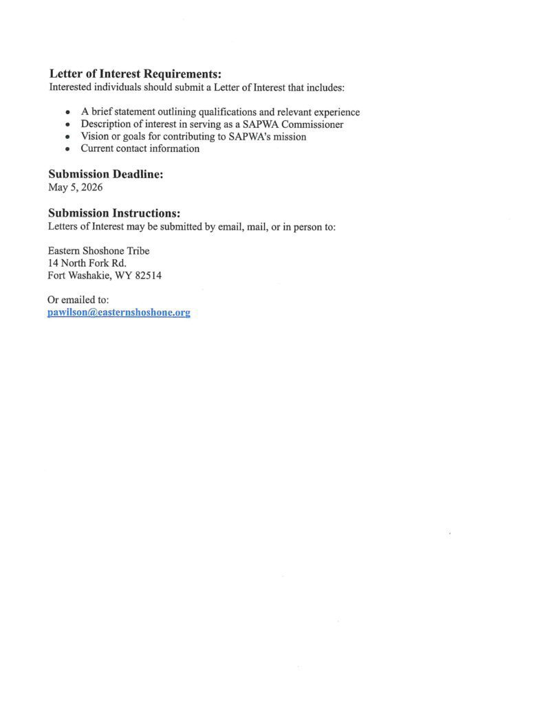 SAPWA Commissioner Position Open